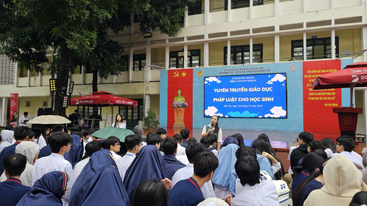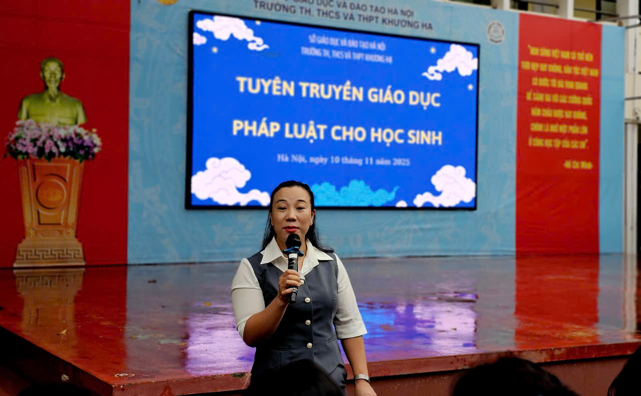 Sáng thứ Hai, ngày 10/11/2025, trong khuôn khổ buổi sinh hoạt dưới cờ, học sinh khối THCS và THPT trường TH, THCS và THPT Khương Hạ đã có cơ hội tham dự buổi chia sẻ chuyên đề đặc biệt với Tiến sĩ Lưu Trần Phương Thảo – giảng viên Khoa Luật, Học viện Phụ nữ Việt Nam. Với chủ đề “Bạo lực học đường – Nhận diện và hành động”, Tiến sĩ đã mang đến một góc nhìn toàn diện, sâu sắc và gần gũi về vấn đề đang được xã hội đặc biệt quan tâm.