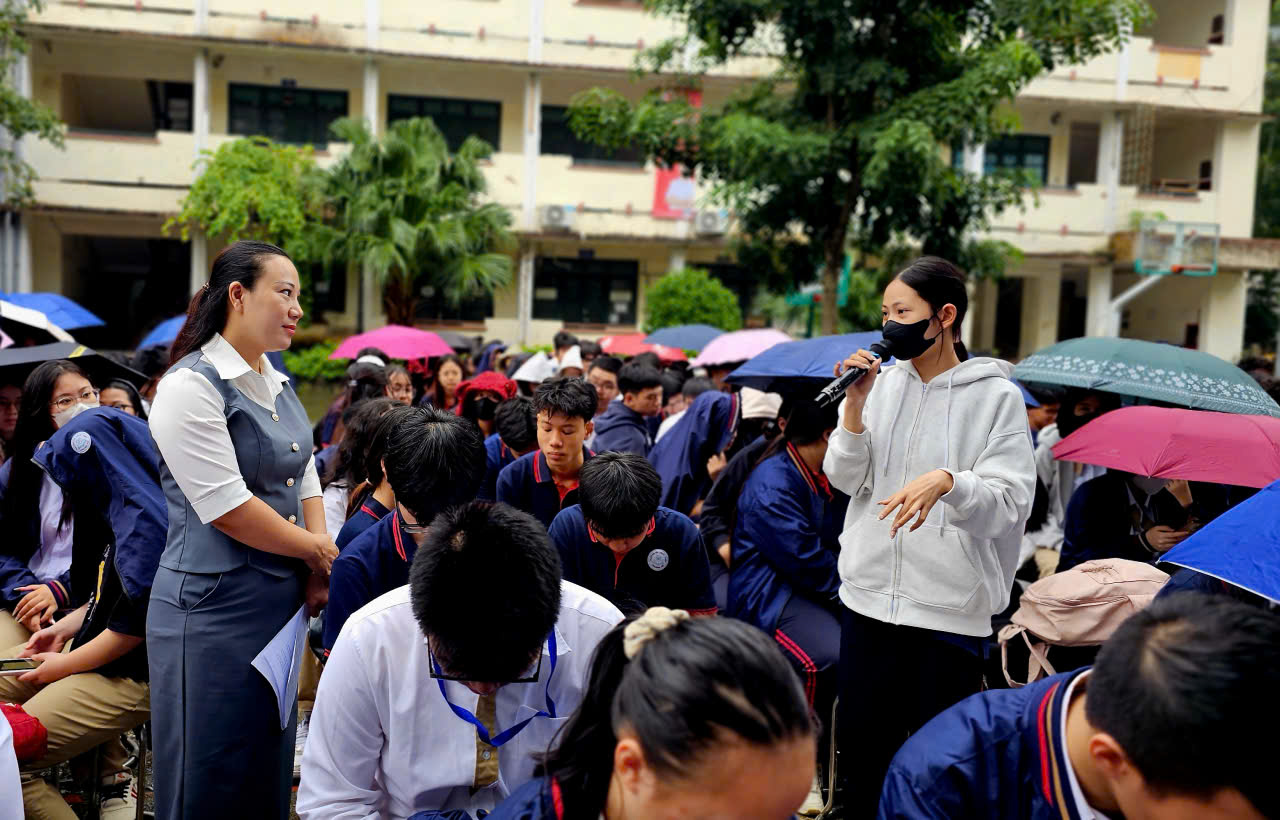 Không khí buổi sinh hoạt trở nên đặc biệt sôi nổi khi học sinh các lớp tích cực đặt câu hỏi, chia sẻ quan điểm và tương tác trực tiếp với diễn giả. Tiến sĩ Phương Thảo đã lắng nghe, giải đáp tận tình và khuyến khích các em mạnh dạn bày tỏ suy nghĩ, từ đó truyền cảm hứng để các em trở thành những người bạn tử tế, có trách nhiệm và biết hành động đúng đắn trước các hành vi tiêu cực trong môi trường học đường.