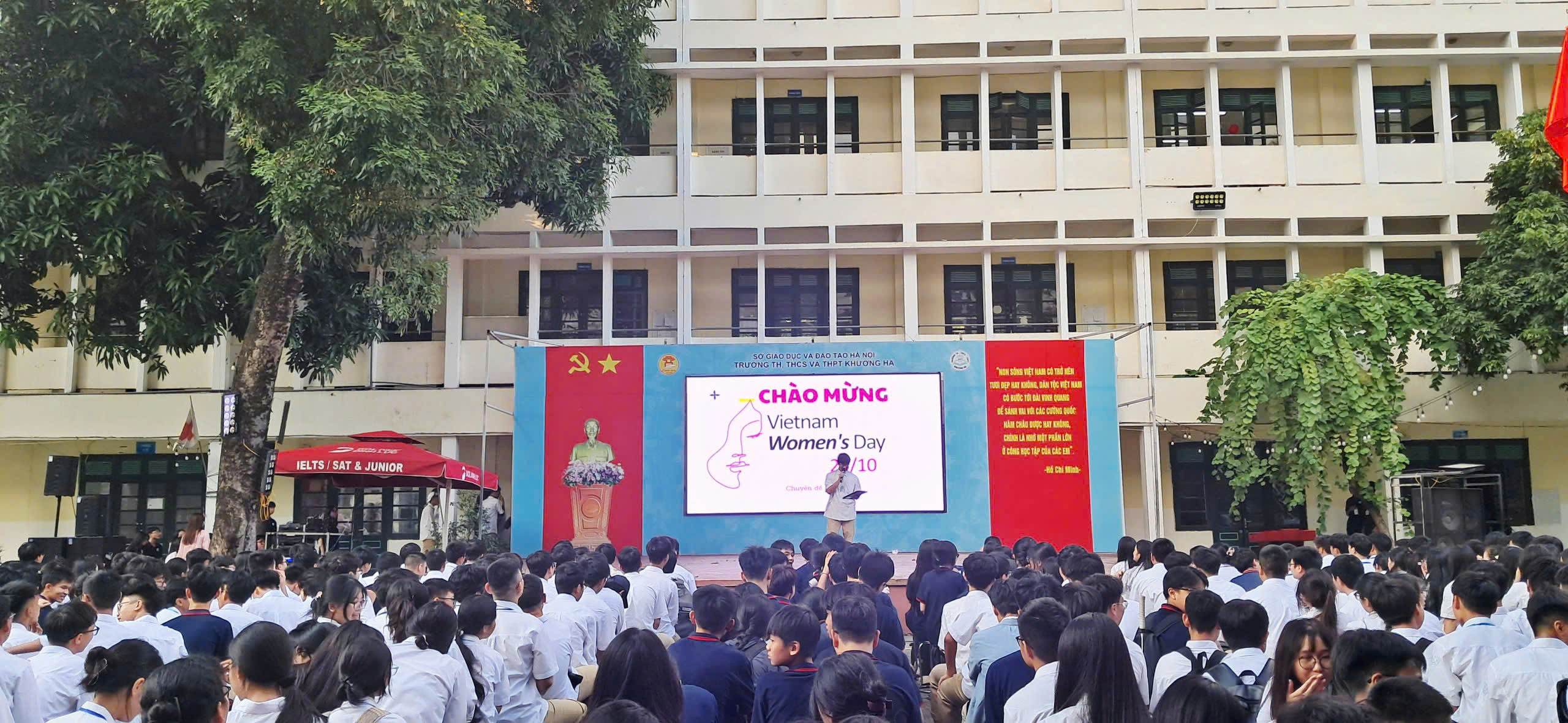 Phát biểu tại chương trình, cô Hoàng Ánh Phương – Hiệu trưởng nhà trường – đã gửi lời chúc mừng tới toàn thể nữ giáo viên, đồng thời nhắn nhủ học sinh hãy luôn trân trọng, yêu thương và lan tỏa những giá trị tốt đẹp của người phụ nữ trong cuộc sống hàng ngày.