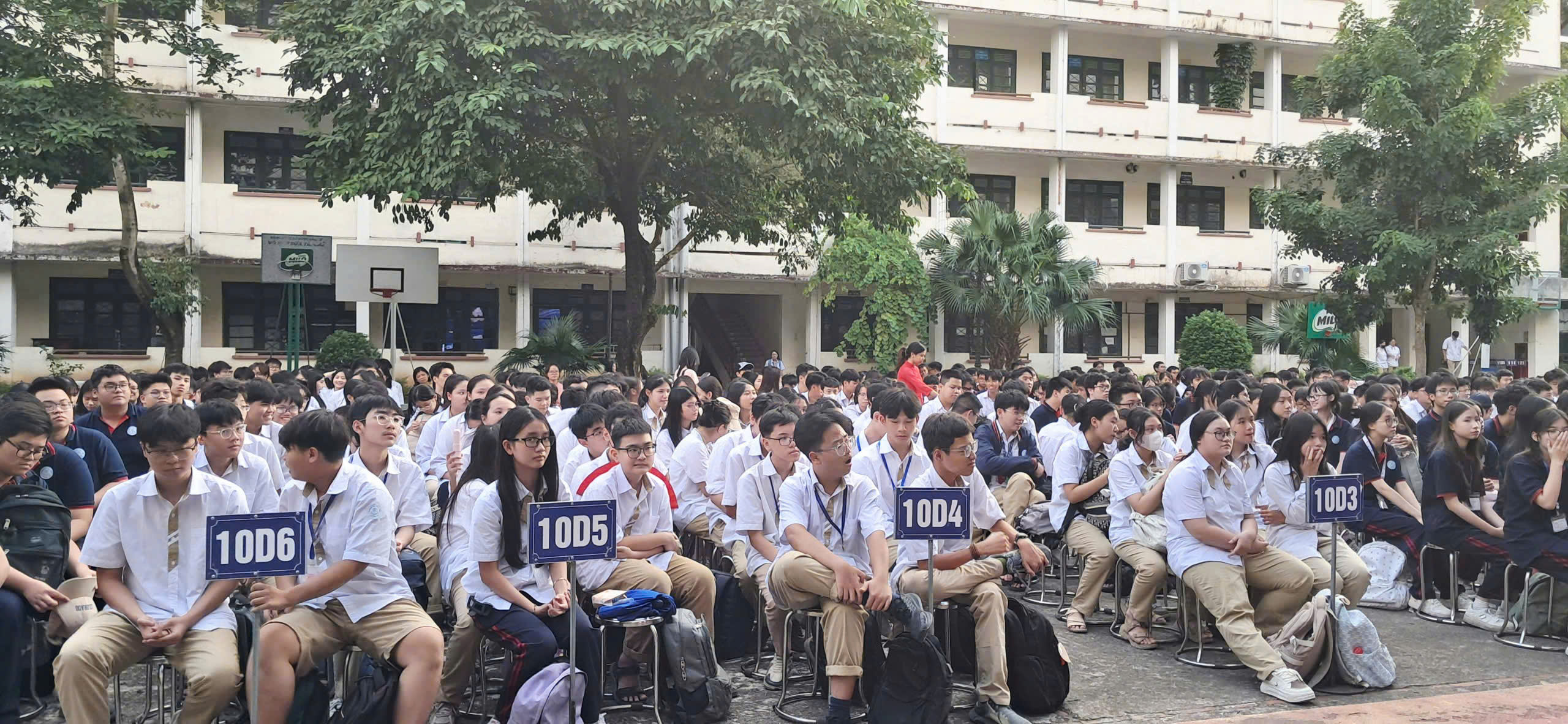 Buổi sinh hoạt diễn ra trong không khí trang trọng, ấm áp với sự hiện diện của Ban giám hiệu, các thầy cô giáo, đại diện cha mẹ học sinh và toàn thể học sinh toàn trường. Mở đầu chương trình là tiết mục đơn ca “Người gieo mầm xanh” do bạn Trung Kiên lớp 12I thể hiện, mang đến những cảm xúc lắng đọng về hình ảnh người phụ nữ Việt Nam qua từng giai đoạn lịch sử.