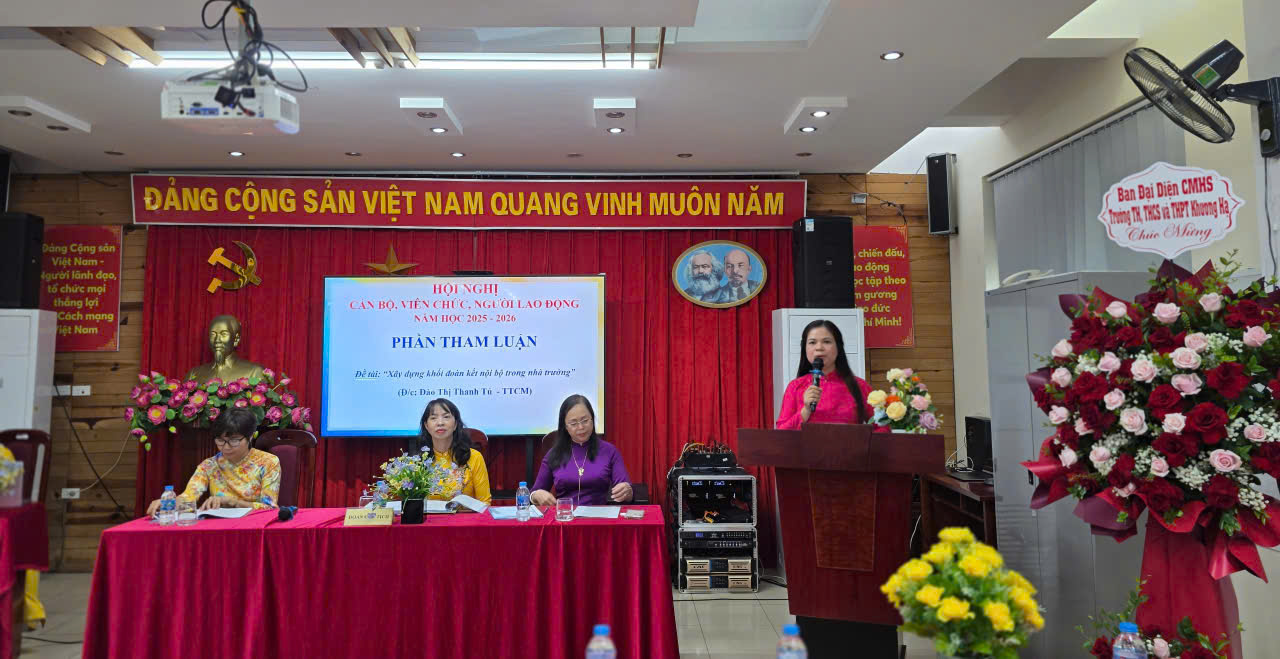 🏫 Vào sáng ngày 25/10/2025, Trường TH, THCS và THPT Khương Hạ đã long trọng tổ chức Hội nghị cán bộ, viên chức và người lao động năm học 2025 – 2026. Đây là dịp để toàn thể nhà trường cùng nhìn lại chặng đường đã qua, đánh giá kết quả thực hiện nhiệm vụ năm học 2024 – 2025, đồng thời đề ra phương hướng, nhiệm vụ cho năm học mới với chủ đề xuyên suốt: “Kỷ cương – Sáng tạo – Đột phá – Phát triển”.