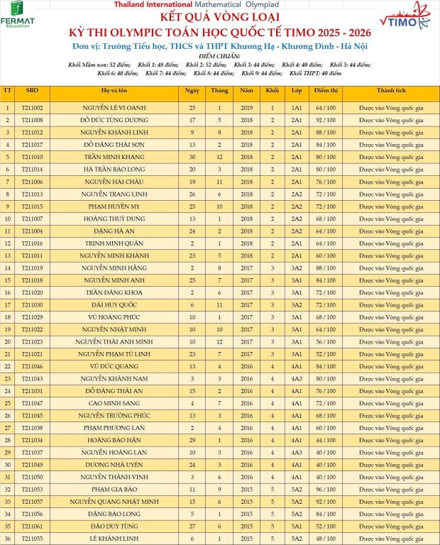 36 học sinh khối Tiểu học, từ lớp 1 đến lớp 5, đã xuất sắc vượt qua hàng ngàn thí sinh trên cả nước để giành quyền bước vào VÒNG THI QUỐC GIA!