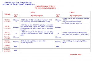LỊCH CÔNG TÁC TUẦN 12 TỪ 24/11/2025 ĐẾN 30/11/2025
