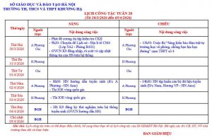 LỊCH CÔNG TÁC TUẦN 28 TỪ 30/3/2026 ĐẾN 05/4/2026