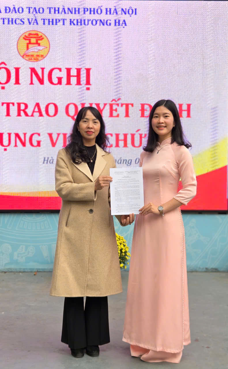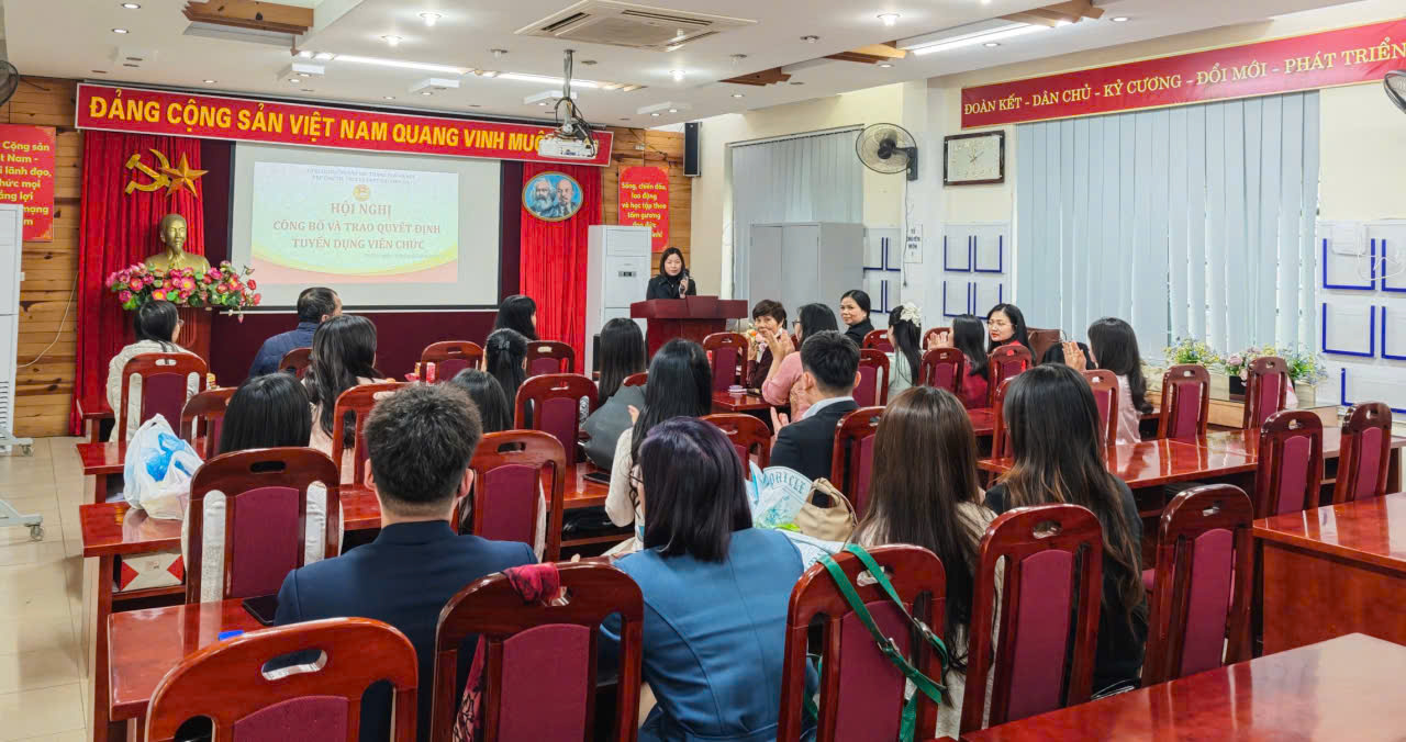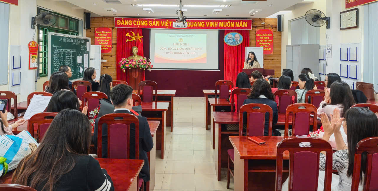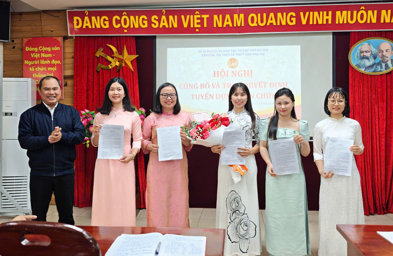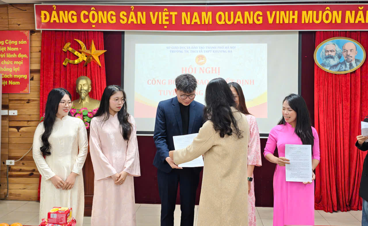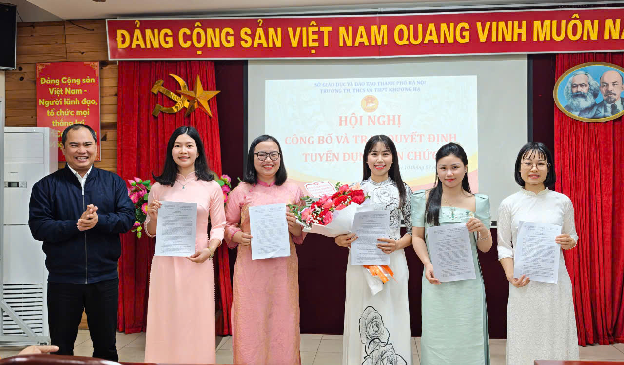 Tại Hội nghị, Ban giám hiệu nhà trường đã trao quyết định về việc tuyển dụng viên chức cho 15 thầy, cô giáo đã xuất sắc vượt qua các vòng thi tuyển. Đây là những nhân sự được đánh giá cao về năng lực chuyên môn, đạo đức nghề nghiệp và có tư duy sư phạm đổi mới.