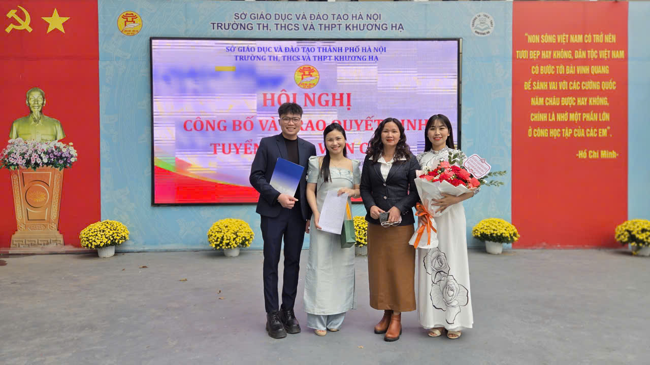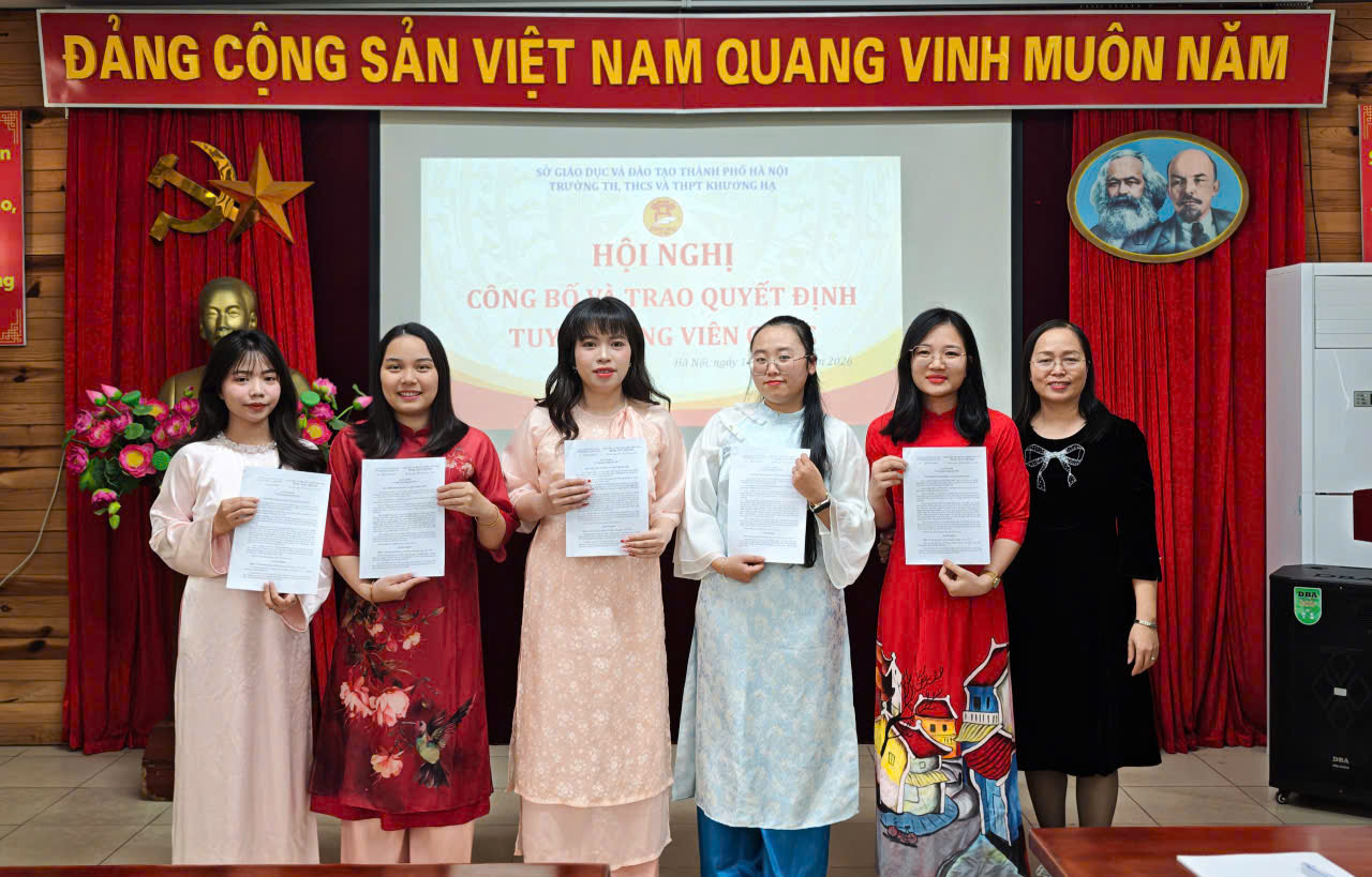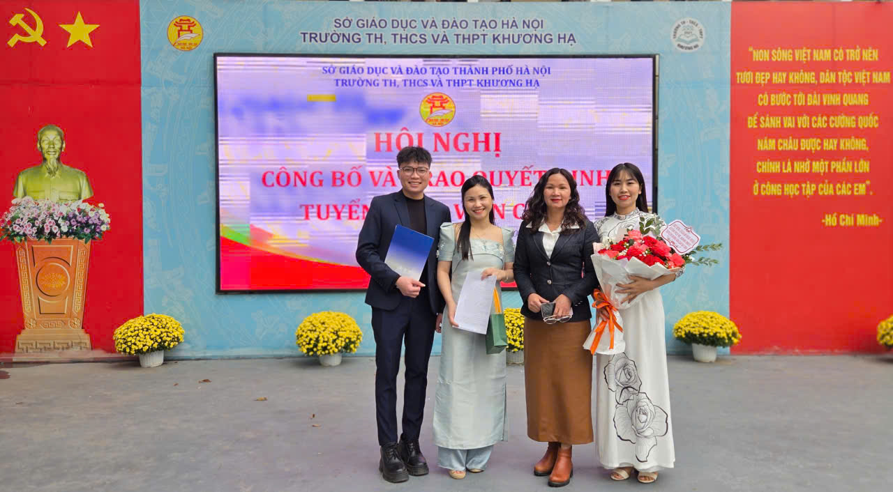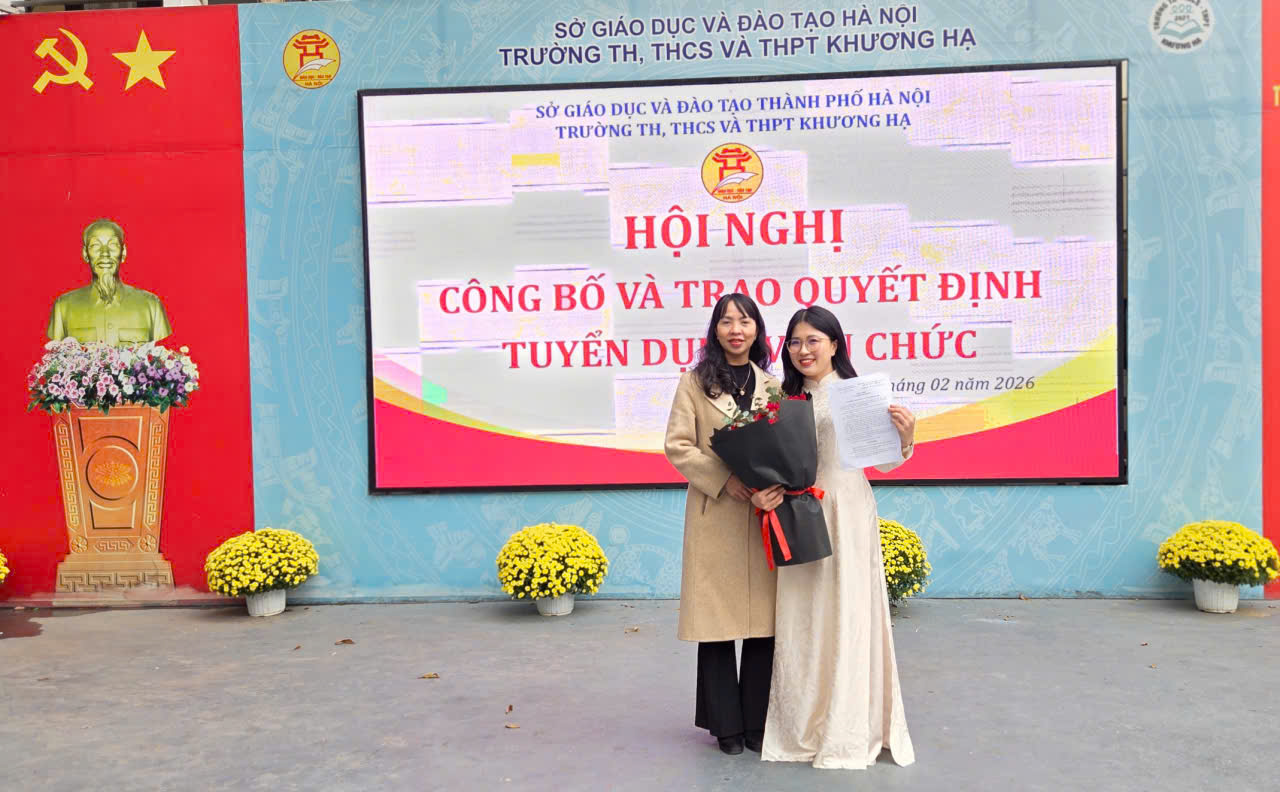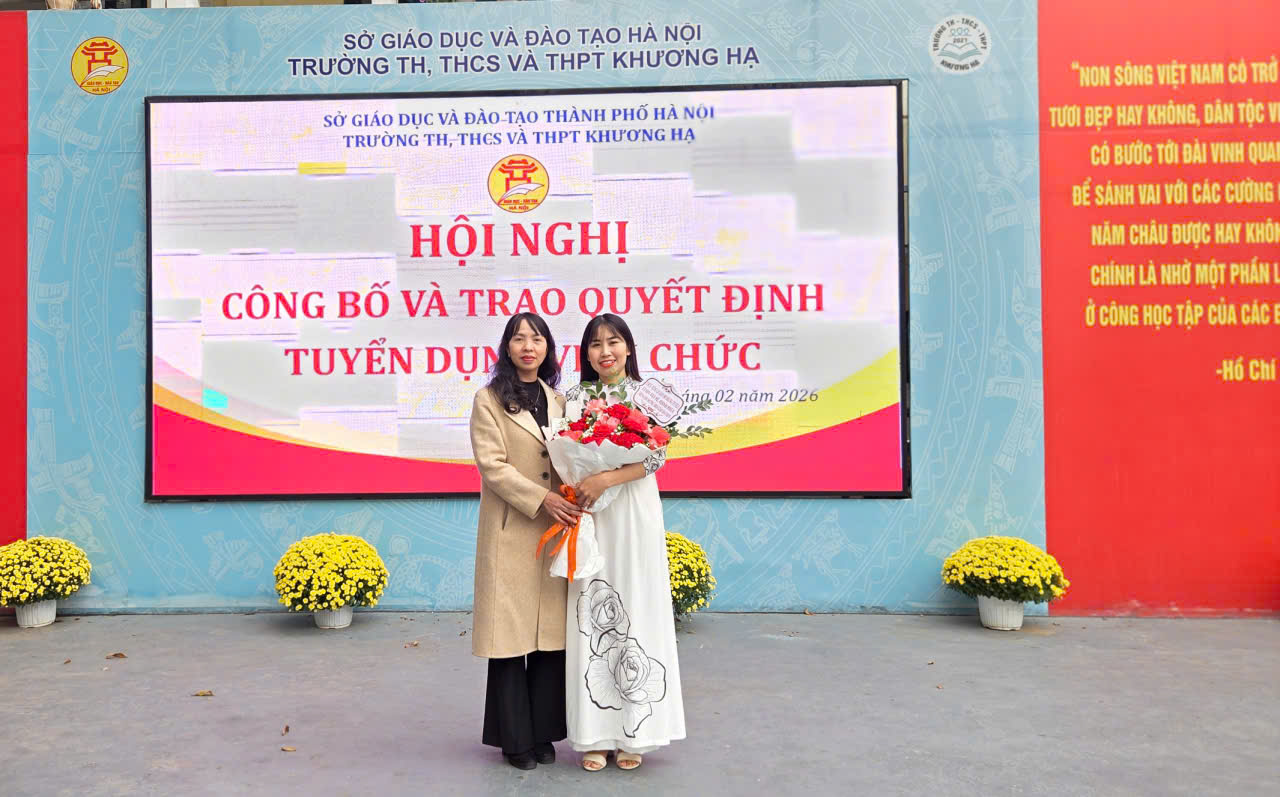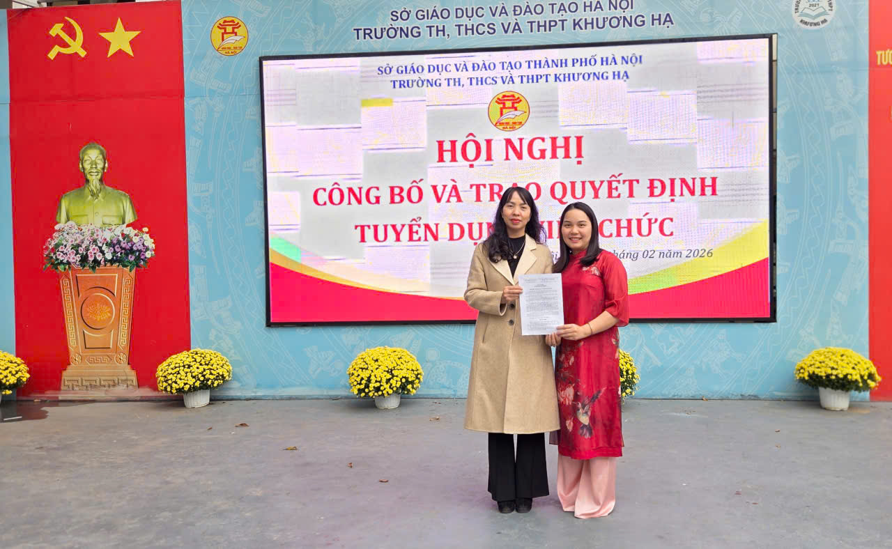Chiều ngày 10/02/2026, trường TH, THCS và THPT Khương Hạ đã tổ chức Hội nghị công bố và trao quyết định tuyển dụng cho 15 viên chức giáo dục trúng tuyển kỳ tuyển dụng năm 2026. Sự kiện đánh dấu bước kiện toàn đội ngũ nhân sự, chuẩn bị cho những mục tiêu chiến lược trong giai đoạn mới của nhà trường.