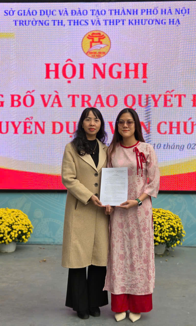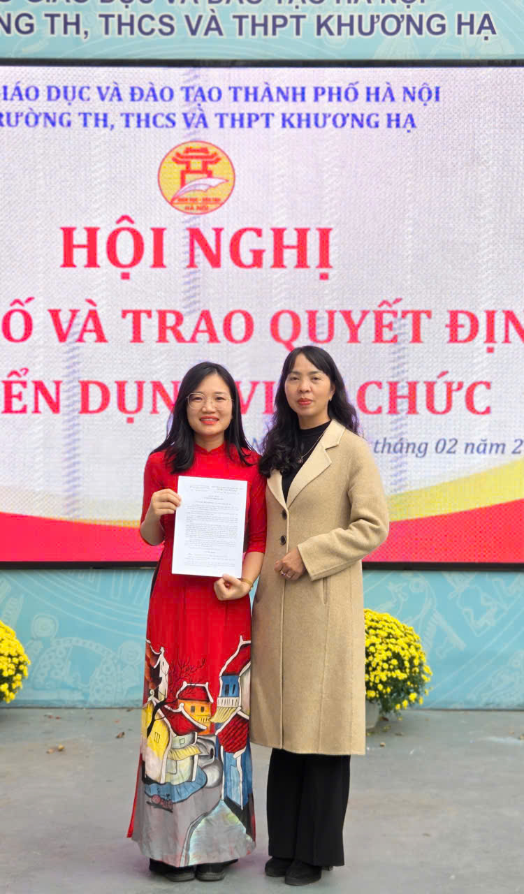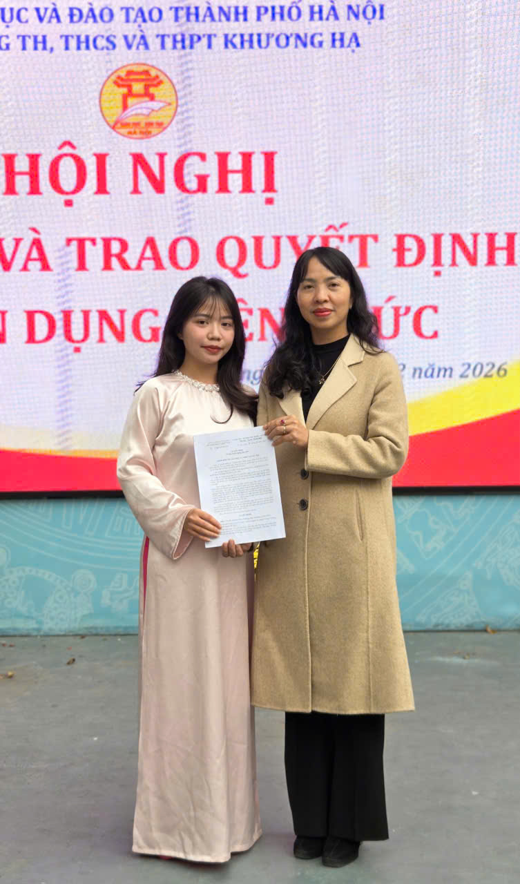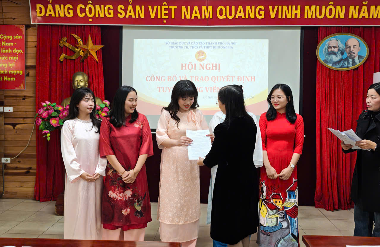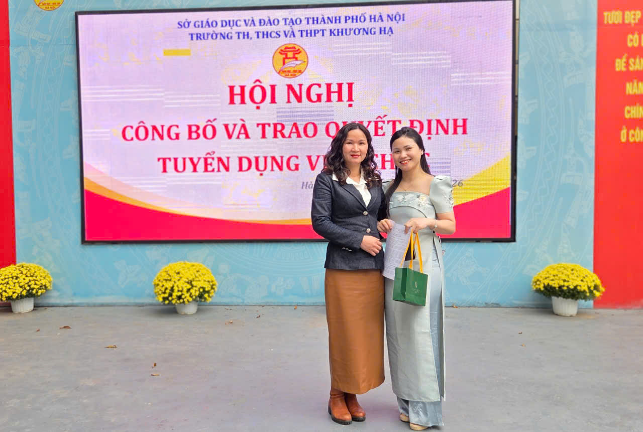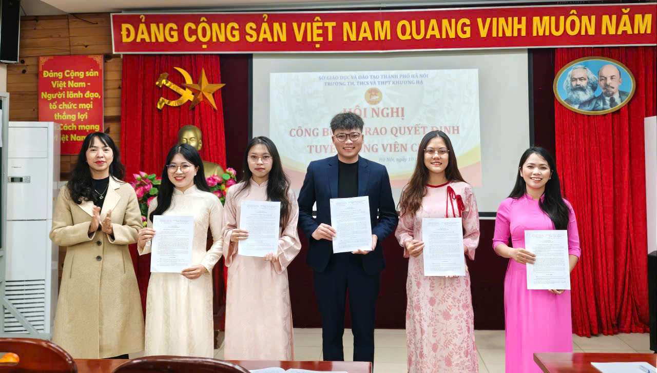 Chiều ngày 10/02/2026, trường TH, THCS và THPT Khương Hạ đã tổ chức Hội nghị công bố và trao quyết định tuyển dụng cho 15 viên chức giáo dục trúng tuyển kỳ tuyển dụng năm 2026. Sự kiện đánh dấu bước kiện toàn đội ngũ nhân sự, chuẩn bị cho những mục tiêu chiến lược trong giai đoạn mới của nhà trường.