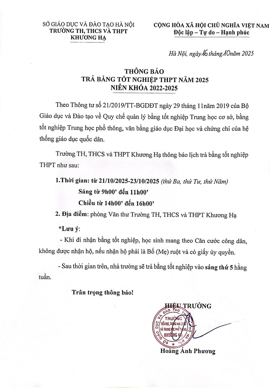 🌿 Trường TH, THCS và THPT Khương Hạ trân trọng chúc mừng các em học sinh đã xuất sắc đạt [...]