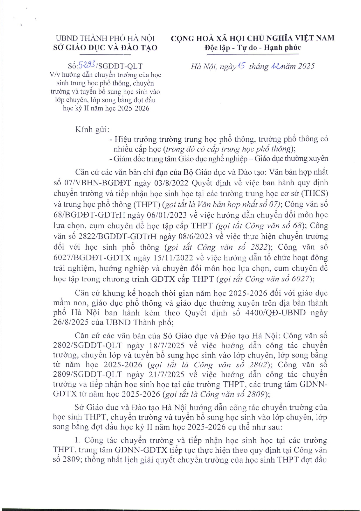 CÔNG VĂN SỐ 5293/SGDĐT-QLT VỀ VIỆC HƯỚNG DẪN CHUYỂN TRƯỜNG CỦA HỌC SINH THPT, CHUYỂN TRƯỜNG VÀ TUYỂN BỔ SUNG [...]